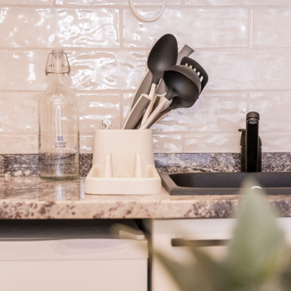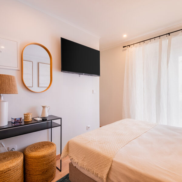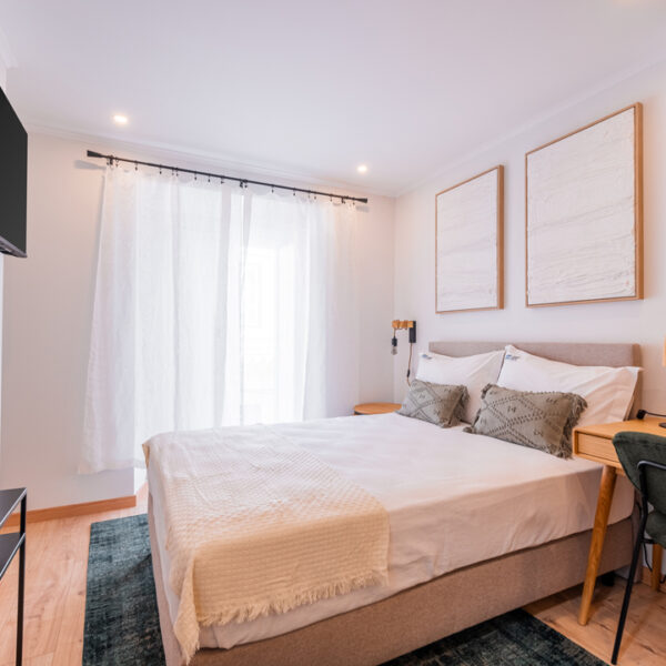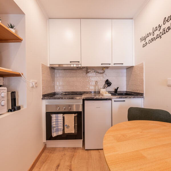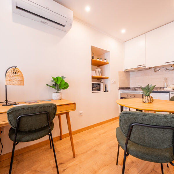 T0 com 41m2 composto por uma casa de banho, uma cozinha tipo kitchenette, com cama de casal, dispõe de roupeiro aberto, televisão e ar condicionado. Área com bastante luz natural. Decoração inspirada na Baia do Sado, rio que banha a linda terra que é Setúbal, com pormenores onde o azul do rio Sado e o verde da Serra da Arrábida estão presentes. Foi pensado para que possa com conforto e tranquilidade desfrutar de uma boa estadia.