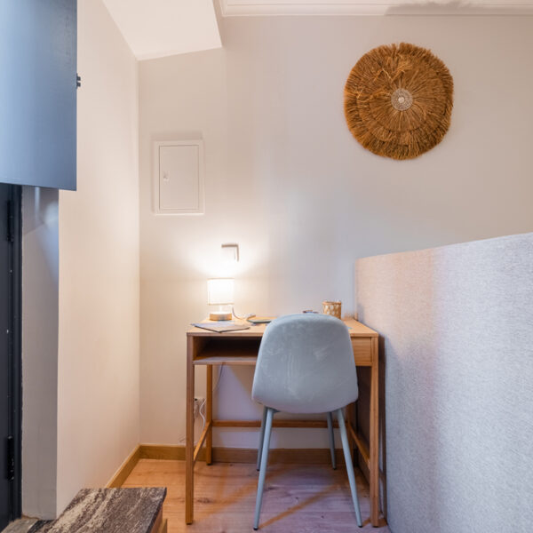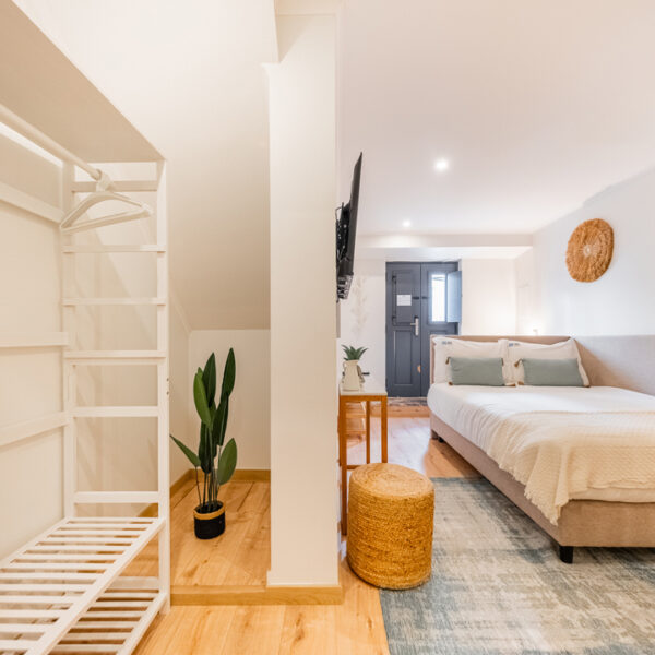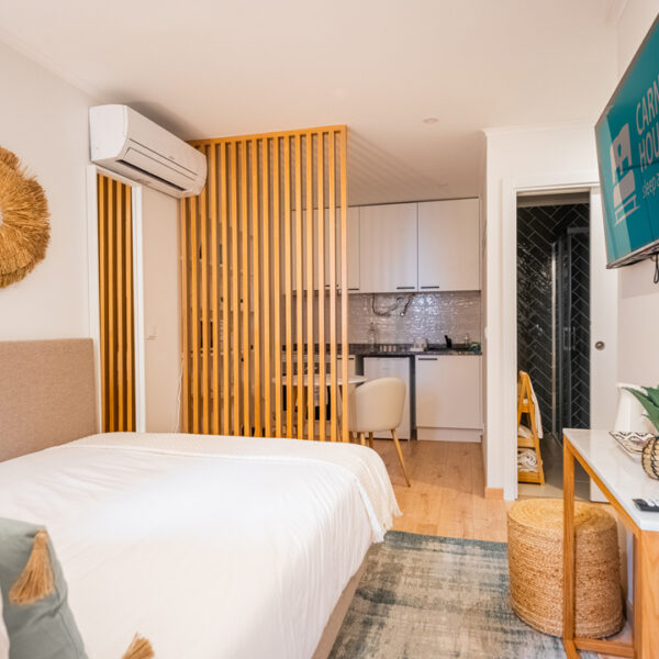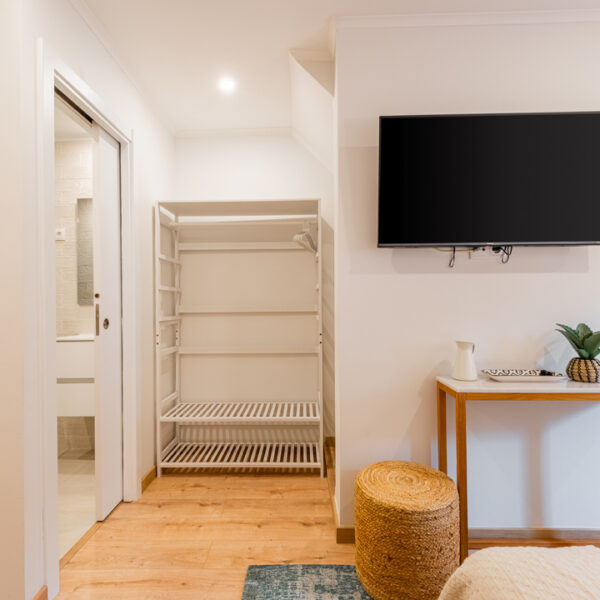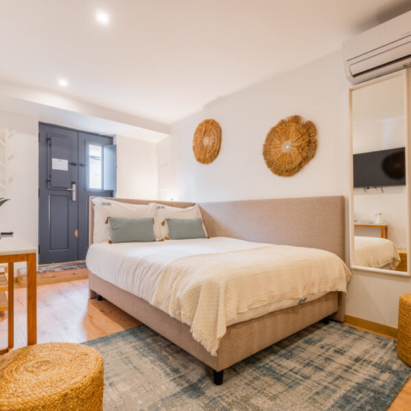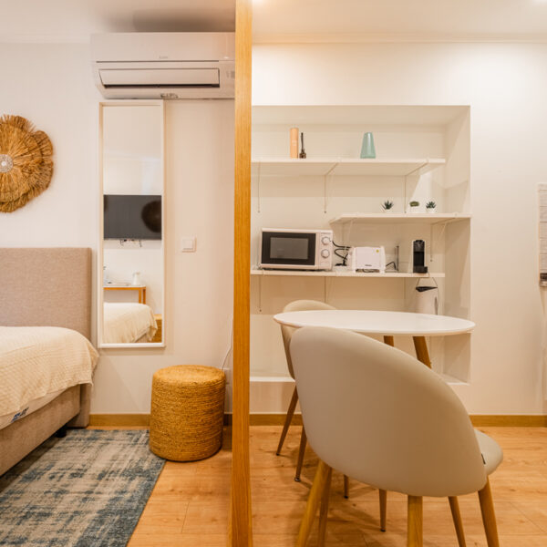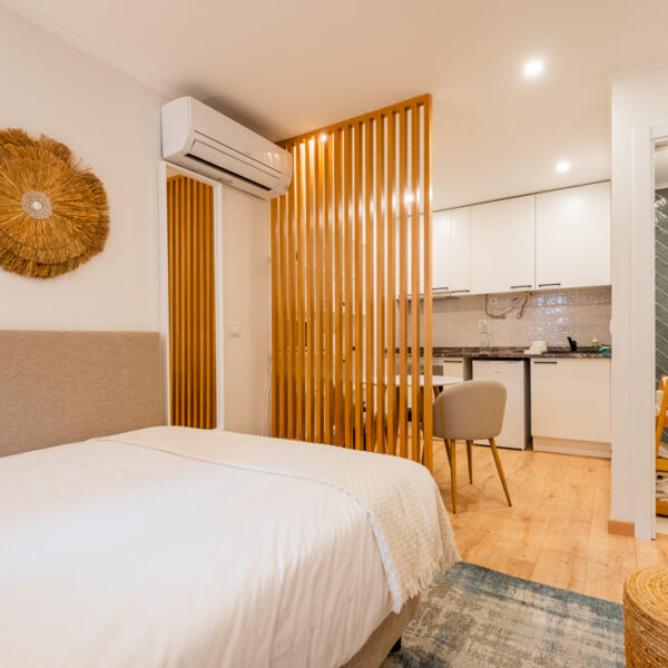 T0 com 41m2 composto por uma casa de banho, uma cozinha tipo kitchenette, com cama de casal, dispõe de roupeiro aberto, televisão e ar condicionado. Área com luz natural. Decoração inspirada no Sado, rio que banha a linda terra que é Setúbal, com pormenores onde o Rui Azul está presente. Foi pensado para que possa com conforto e tranquilidade desfrutar de uma boa estadia.